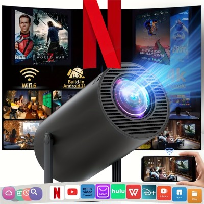 Portable 4K Mini Projector with WiFi and Wireless Features - [Built in Applications and Auto Buttons] Native 1280 * 1080P, Supports 4K Decoding, 180 ° Rotating Movie Projector